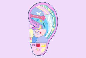 La stimulation de ces points (pose d’une aiguille, d’une agrafe ou l’utilisation d’un détecteur électrique ou des doigts), régule les mécanismes du corps et attenue les douleurs. L’auriculothérapie a sa représentation des organes sur les oreilles.